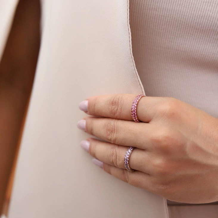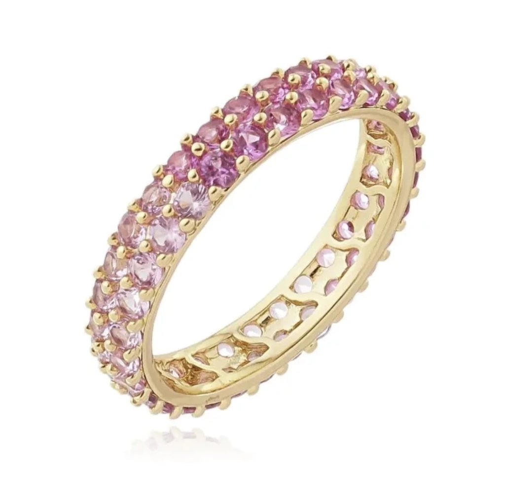 Anel mix pink cravejado com zircônias com detalhe degradê