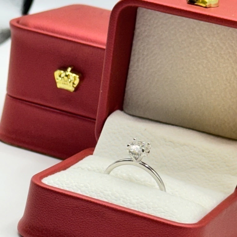 Anel Solitário Moissanite 1,00 ct em Prata 925 com Banho Ouro Branco