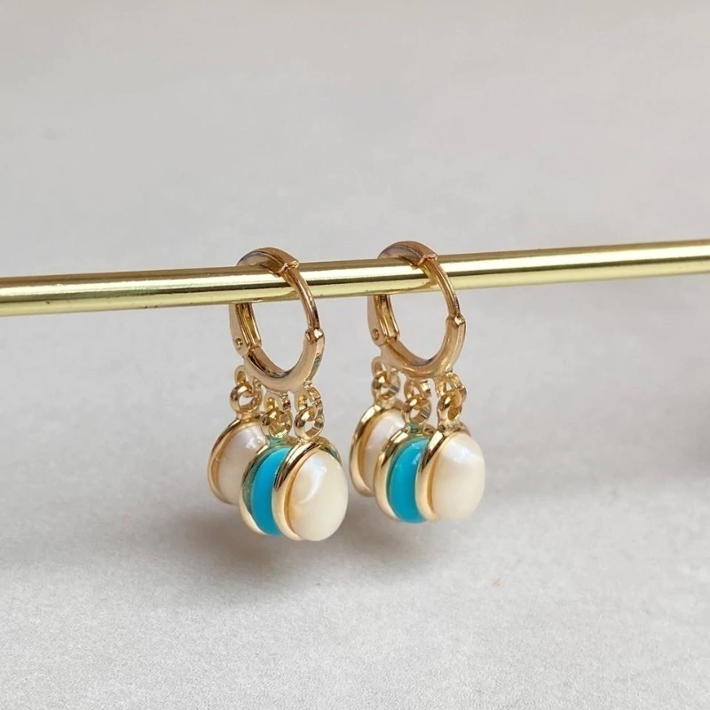 • Argolinhas banhadas a ouro com pingentes esmaltados em turquesa e perolado