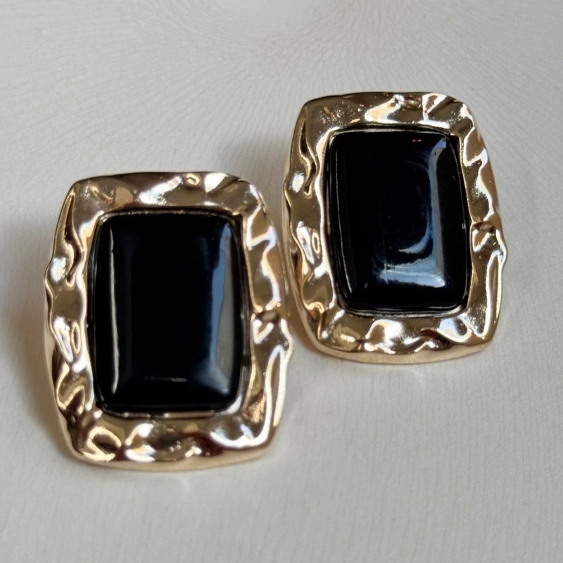 Brinco Resina Preta, banhado a ouro 18k