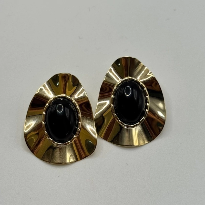 BRINCO OVAL COM PEDRA OVAL PRETO