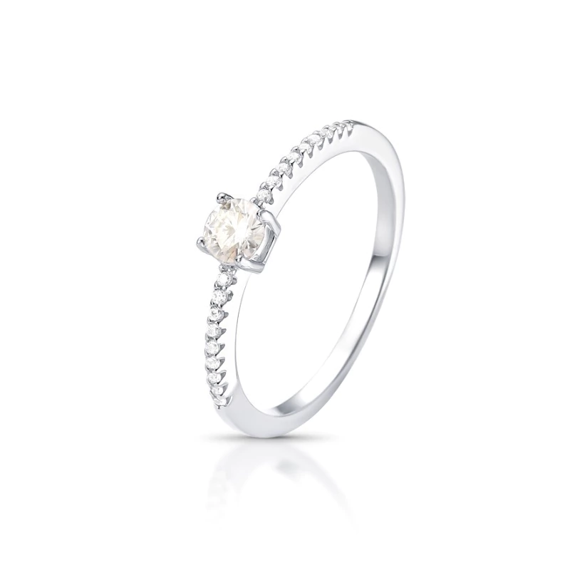 Anel Solitário Moissanite 0,30ct em Prata 925 com Banho Ouro Branco