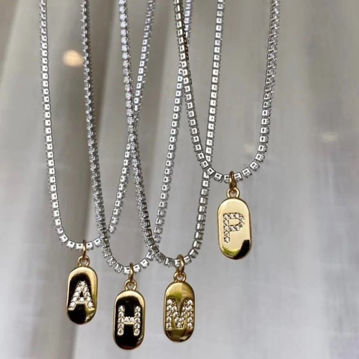 Nossa Riviera de 2mm, no banho de ródio branco, vem acompanhada da plaquinha personalizada em banho ouro 18k, cravejada com microzircônias, trazendo brilho e sofisticação em cada detalhe.
