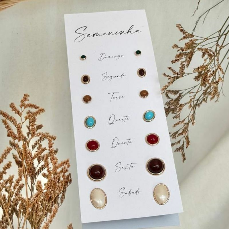 O Kit Semaninha traz 7 brincos redondos e coloridos, em diferentes tamanhos e cores, pensados para acompanhar cada dia da sua semana – do discreto ao ousado, sempre com charme e personalidade.